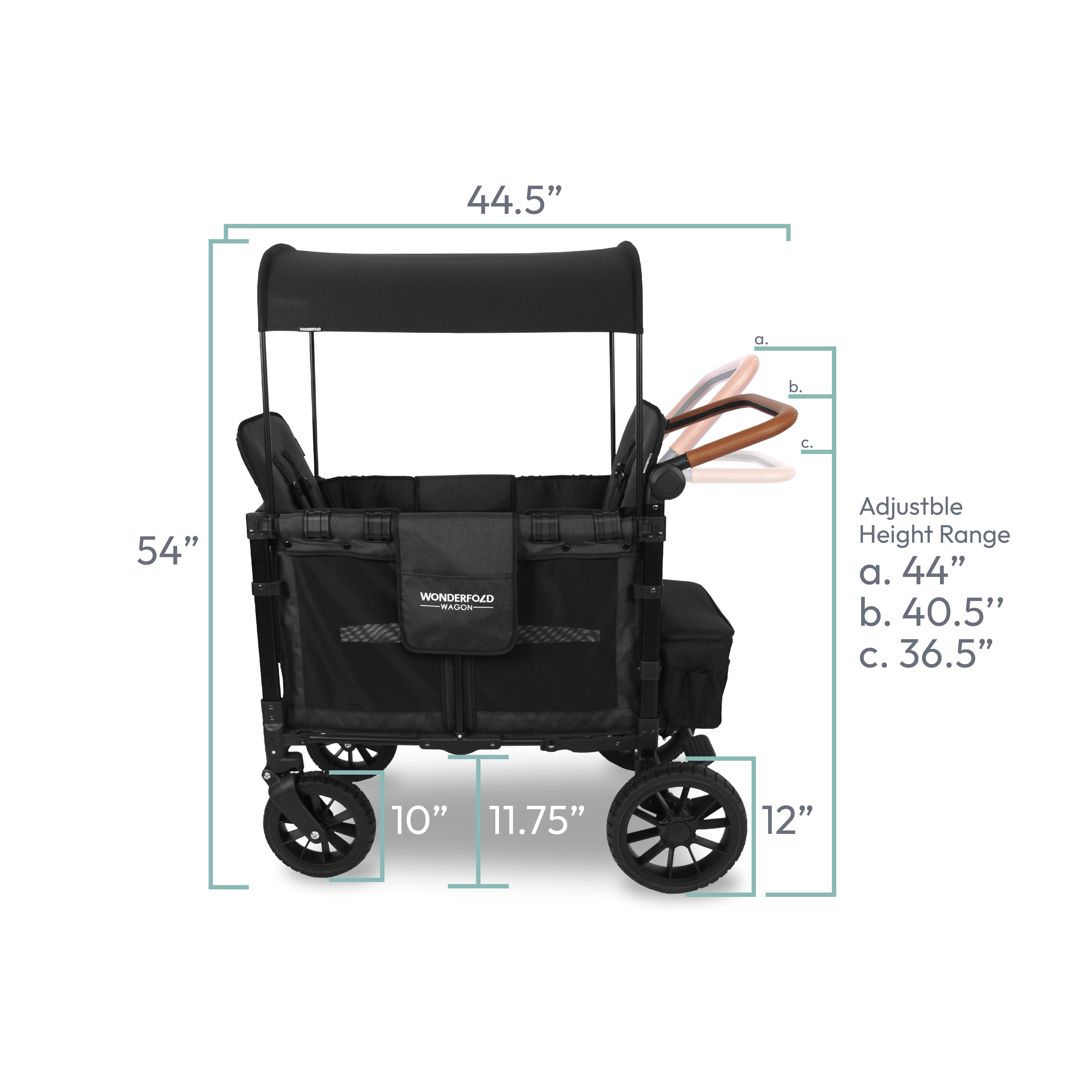 -All-terrain XL wheels with suspension and bearings for a smooth ride and easy maneuvering